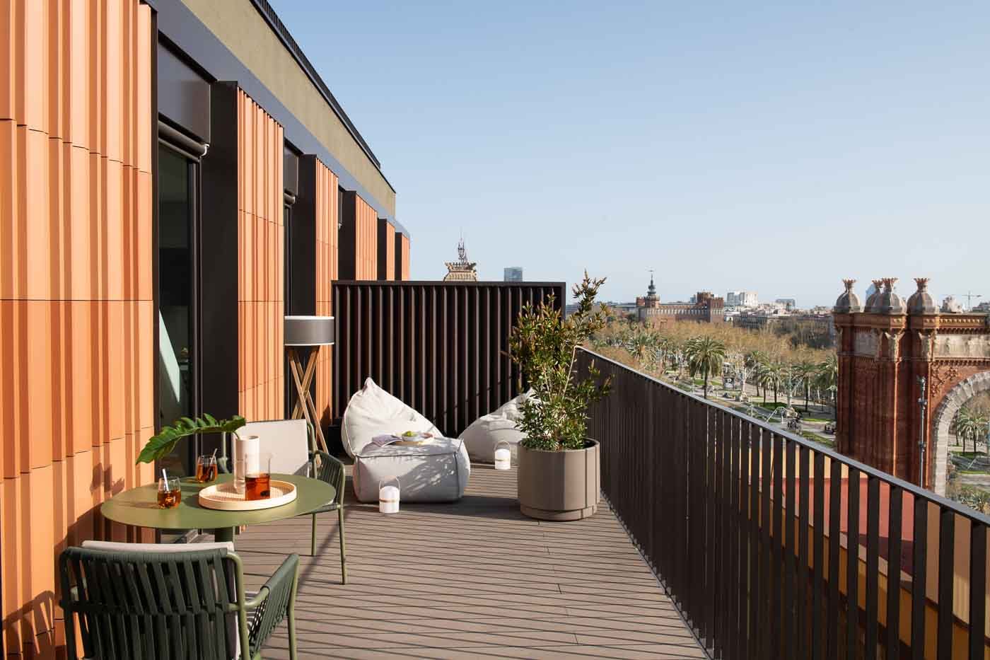 - Con 70 m² de espacio totalmente amueblado y 50 m² de terraza, combina confort, estilo y vistas panorámicas al Arc de Triomf.